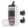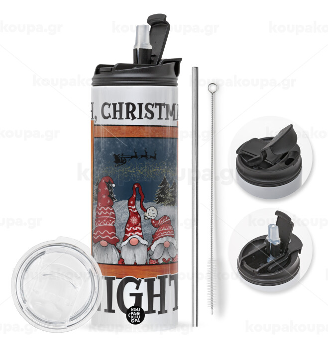 Oh Christmas Night, Travel Tumbler 2 Lids, with metal straw & cleaning brush (Stainless steel 304 Food grade, BPA free, 600ml)