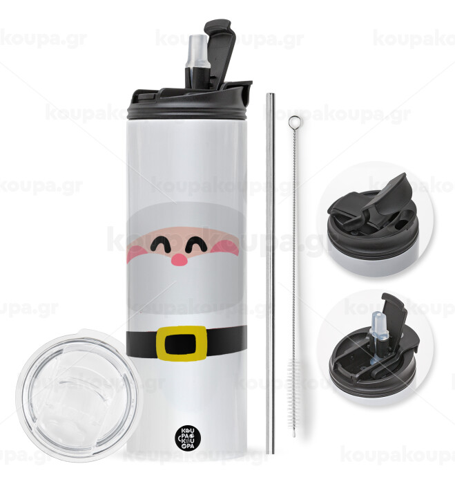 Simple Santa, Travel Tumbler 2 Lids, with metal straw & cleaning brush (Stainless steel 304 Food grade, BPA free, 600ml)
