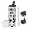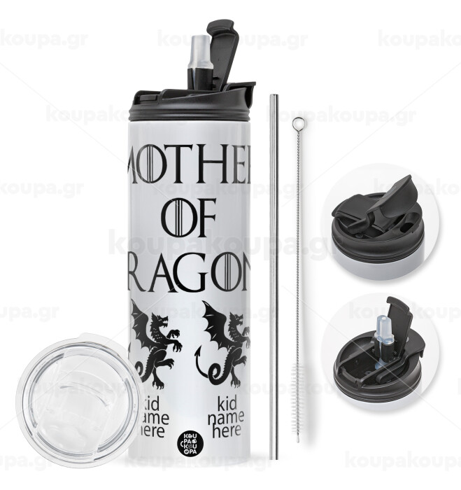 GOT, Mother of Dragons (με ονόματα παιδικά), Travel Tumbler 2 Lids, with metal straw & cleaning brush (Stainless steel 304 Food grade, BPA free, 600ml)