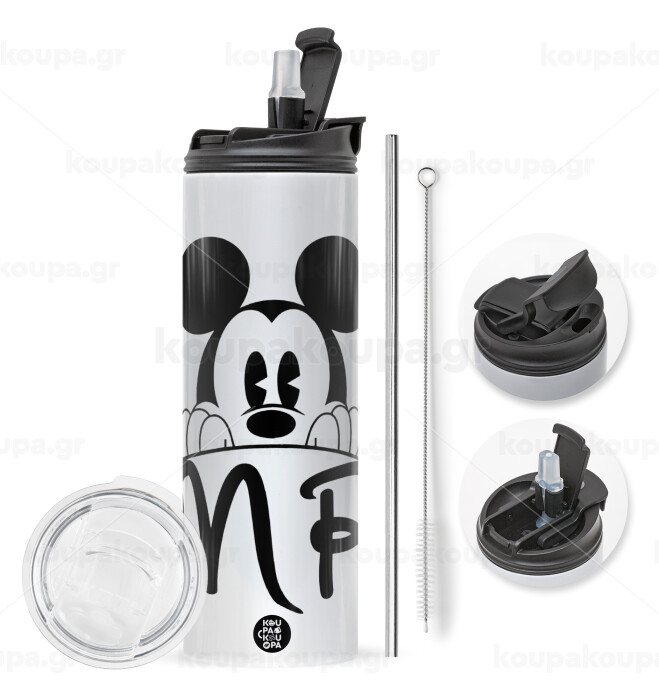 Mikey Mr, Travel Tumbler 2 Lids, with metal straw & cleaning brush (Stainless steel 304 Food grade, BPA free, 600ml)