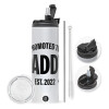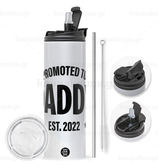 Promoted to Daddy, Travel Tumbler 2 Lids, with metal straw & cleaning brush (Stainless steel 304 Food grade, BPA free, 600ml)