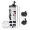 8bit Game Over Couple Wedding, Travel Tumbler 2 Lids, with metal straw & cleaning brush (Stainless steel 304 Food grade, BPA free, 600ml)