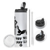 Happy Wife, Happy Life, Travel Tumbler 2 Lids, with metal straw & cleaning brush (Stainless steel 304 Food grade, BPA free, 600ml)