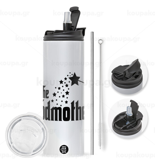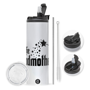 Fairy GodMother, Travel Tumbler 2 Lids, with metal straw & cleaning brush (Stainless steel 304 Food grade, BPA free, 600ml)