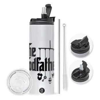 The Godfather baby, Travel Tumbler 2 Lids, with metal straw & cleaning brush (Stainless steel 304 Food grade, BPA free, 600ml)