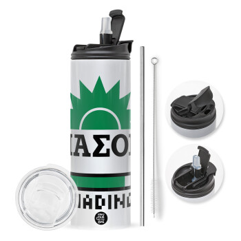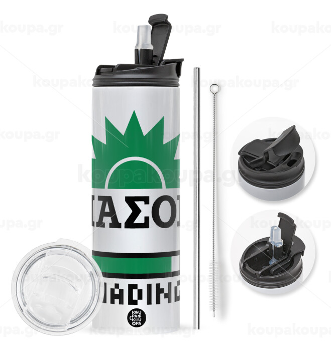 PASOK Loading, Travel Tumbler 2 Lids, with metal straw & cleaning brush (Stainless steel 304 Food grade, BPA free, 600ml)