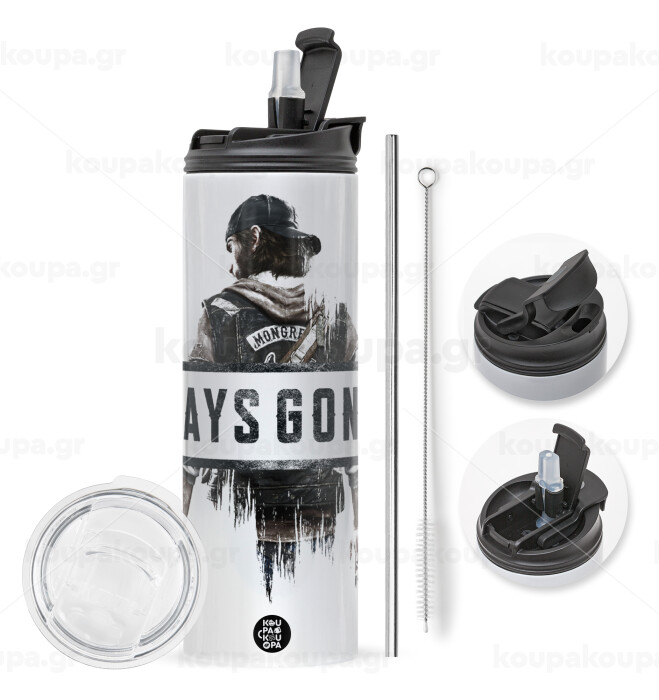 Day's Gone, Travel Tumbler 2 Lids, with metal straw & cleaning brush (Stainless steel 304 Food grade, BPA free, 600ml)
