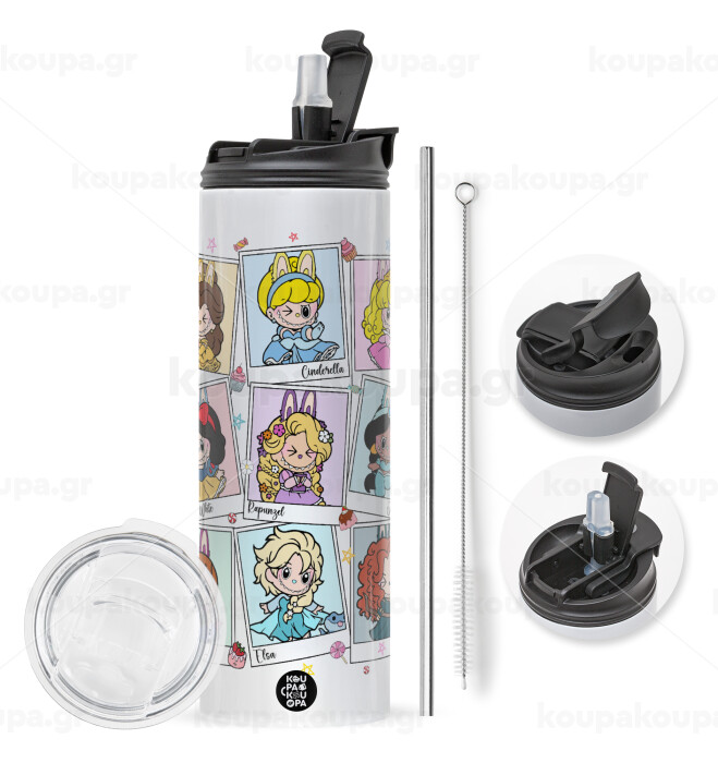 Labubu characters, Travel Tumbler 2 Lids, with metal straw & cleaning brush (Stainless steel 304 Food grade, BPA free, 600ml)