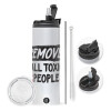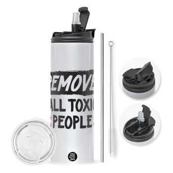 Remove all toxic people, Travel Tumbler 2 Lids, with metal straw & cleaning brush (Stainless steel 304 Food grade, BPA free, 600ml)