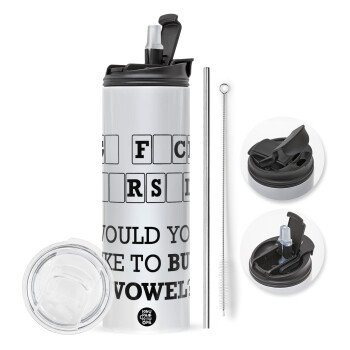 Wheel of fortune, go f..k yourself, Travel Tumbler 2 Lids, with metal straw & cleaning brush (Stainless steel 304 Food grade, BPA free, 600ml)