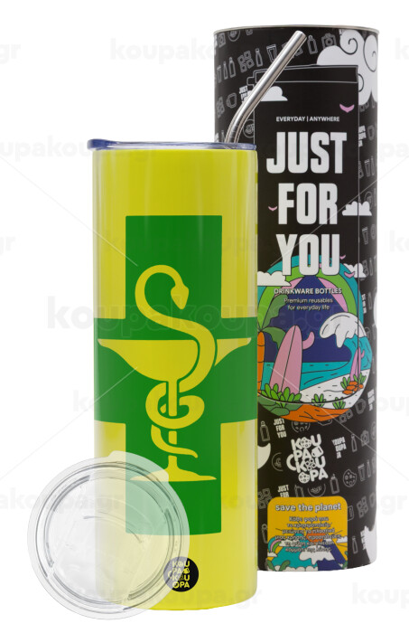 Φαρμακείο, Neon Yellow Travel Tumbler, with metal straw (Stainless steel 304 Food grade, BPA free, 600ml)