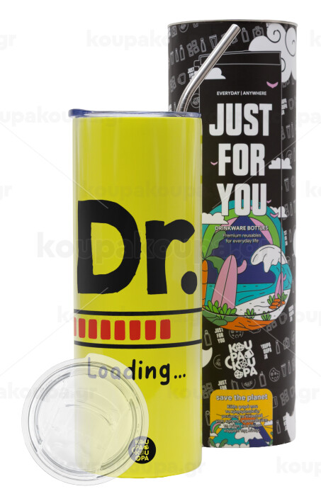 DR. Loading..., Neon Yellow Travel Tumbler, with metal straw (Stainless steel 304 Food grade, BPA free, 600ml)