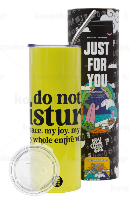 Do not disturb, Neon Yellow Travel Tumbler, with metal straw (Stainless steel 304 Food grade, BPA free, 600ml)