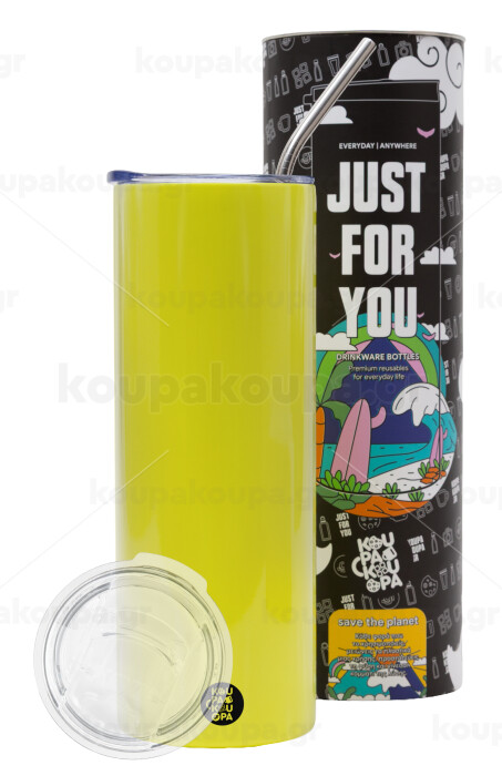 BLANK, Neon Yellow Travel Tumbler, with metal straw (Stainless steel 304 Food grade, BPA free, 600ml)