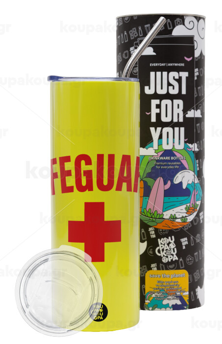 Lifeguard, Neon Yellow Travel Tumbler, with metal straw (Stainless steel 304 Food grade, BPA free, 600ml)