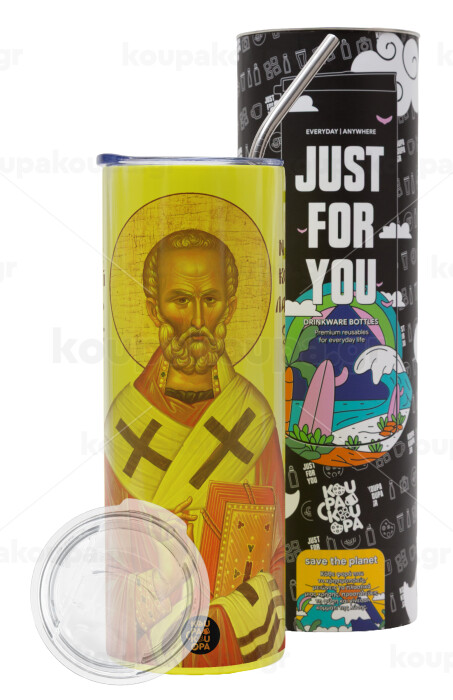 Saint Nicholas orthodox , Neon Yellow Travel Tumbler, with metal straw (Stainless steel 304 Food grade, BPA free, 600ml)