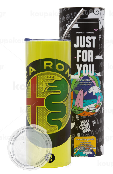 Alfa Romeo, Neon Yellow Travel Tumbler, with metal straw (Stainless steel 304 Food grade, BPA free, 600ml)