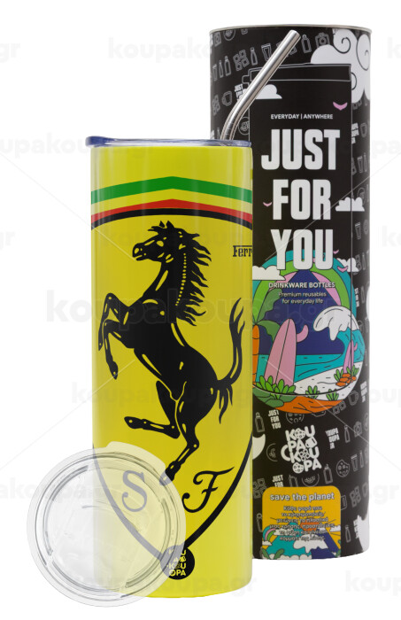 Ferrari, Neon Yellow Travel Tumbler, with metal straw (Stainless steel 304 Food grade, BPA free, 600ml)