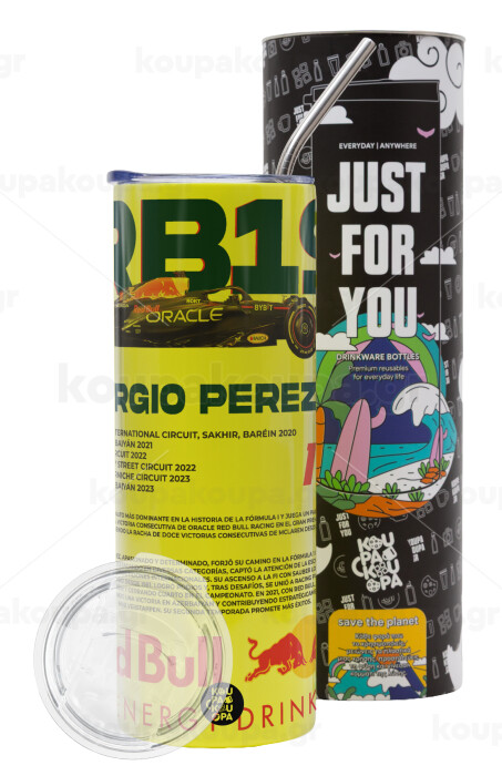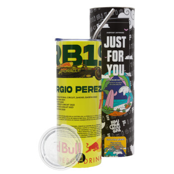 Redbull Sergio Perezi, Neon Yellow Travel Tumbler, with metal straw (Stainless steel 304 Food grade, BPA free, 600ml)