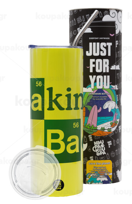 Baking Bad, Neon Yellow Travel Tumbler, with metal straw (Stainless steel 304 Food grade, BPA free, 600ml)