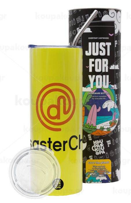 Disaster Chef, Neon Yellow Travel Tumbler, with metal straw (Stainless steel 304 Food grade, BPA free, 600ml)
