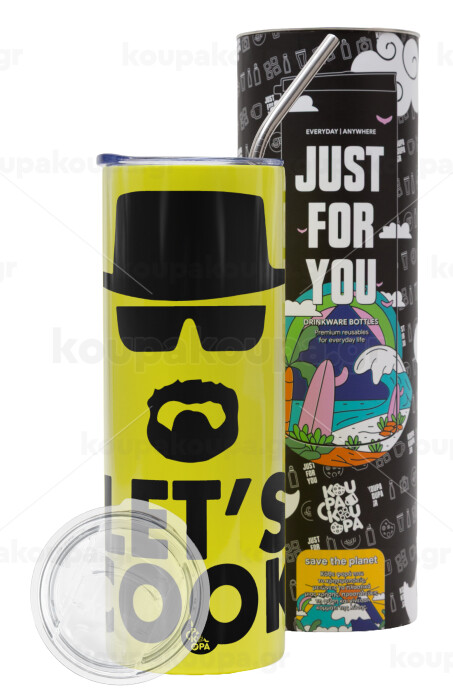 Let's cook, Neon Yellow Travel Tumbler, with metal straw (Stainless steel 304 Food grade, BPA free, 600ml)