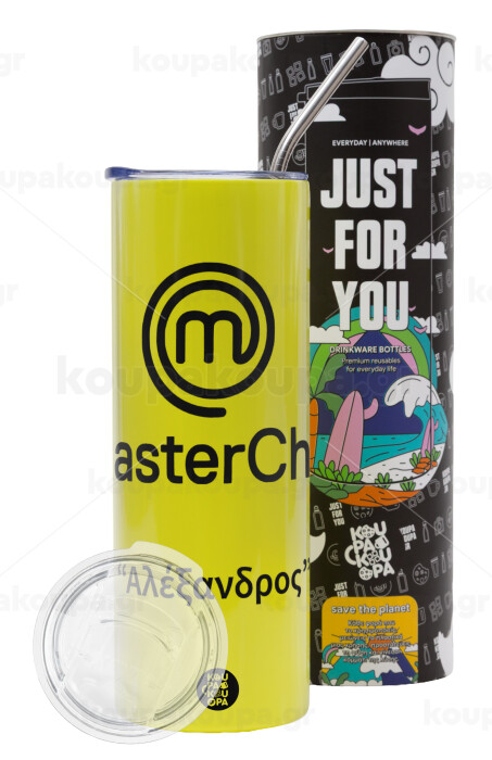 Master Chef, Neon Yellow Travel Tumbler, with metal straw (Stainless steel 304 Food grade, BPA free, 600ml)