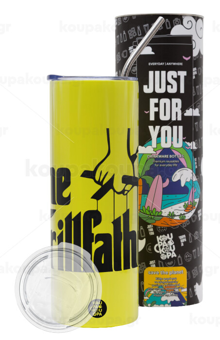 The Grillfather, Neon Yellow Travel Tumbler, with metal straw (Stainless steel 304 Food grade, BPA free, 600ml)
