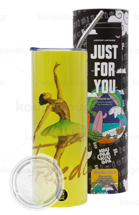 Gold Dancer, Neon Yellow Travel Tumbler, with metal straw (Stainless steel 304 Food grade, BPA free, 600ml)