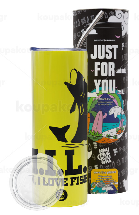 M.I.L.F. Mam i love fishing, Neon Yellow Travel Tumbler, with metal straw (Stainless steel 304 Food grade, BPA free, 600ml)