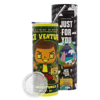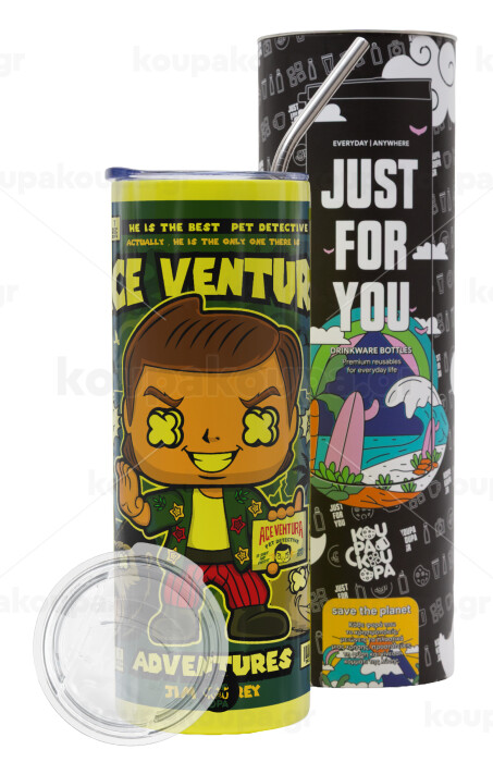 Ace Ventura: Pet Detective, Neon Yellow Travel Tumbler, with metal straw (Stainless steel 304 Food grade, BPA free, 600ml)