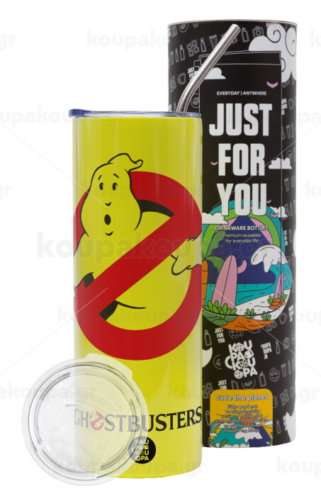Ghostbusters, Neon Yellow Travel Tumbler, with metal straw (Stainless steel 304 Food grade, BPA free, 600ml)
