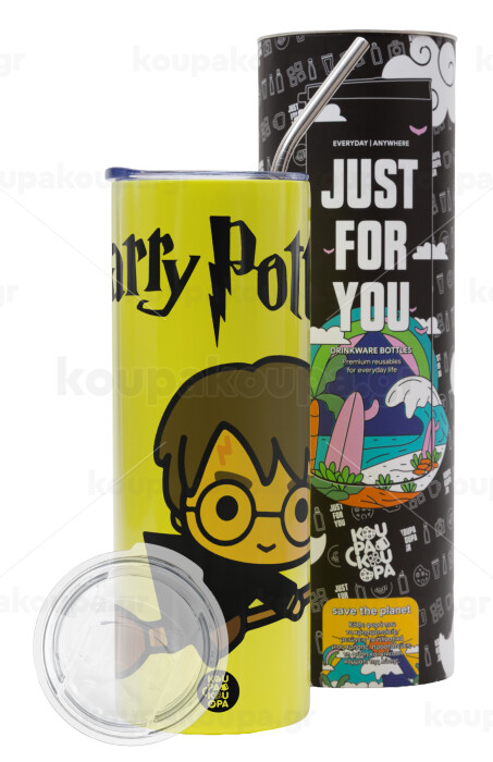 Harry potter kid, Neon Yellow Travel Tumbler, with metal straw (Stainless steel 304 Food grade, BPA free, 600ml)