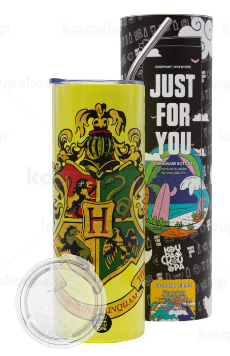 Hogwart's, Neon Yellow Travel Tumbler, with metal straw (Stainless steel 304 Food grade, BPA free, 600ml)