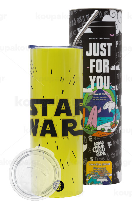 Star Wars, Neon Yellow Travel Tumbler, with metal straw (Stainless steel 304 Food grade, BPA free, 600ml)