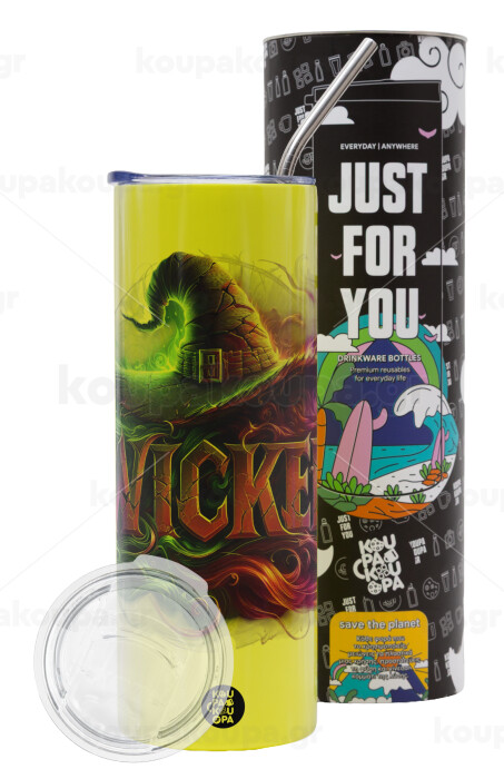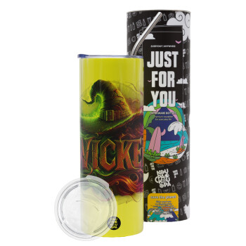 Wicked, Neon Yellow Travel Tumbler, with metal straw (Stainless steel 304 Food grade, BPA free, 600ml)