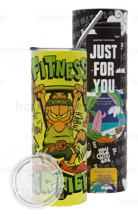 Garfield Fitness, Neon Yellow Travel Tumbler, with metal straw (Stainless steel 304 Food grade, BPA free, 600ml)