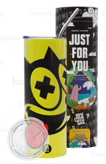 helix the cat, Neon Yellow Travel Tumbler, with metal straw (Stainless steel 304 Food grade, BPA free, 600ml)
