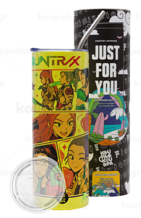 Huntrix Kpop Girls, Neon Yellow Travel Tumbler, with metal straw (Stainless steel 304 Food grade, BPA free, 600ml)