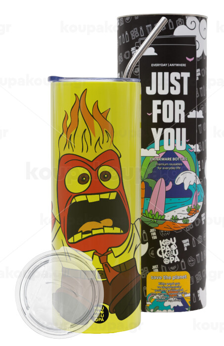 Inside Out Angry, Neon Yellow Travel Tumbler, with metal straw (Stainless steel 304 Food grade, BPA free, 600ml)