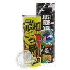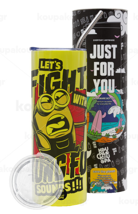 Minions Let's fight with kung fu sounds, Neon Yellow Travel Tumbler, with metal straw (Stainless steel 304 Food grade, BPA free, 600ml)