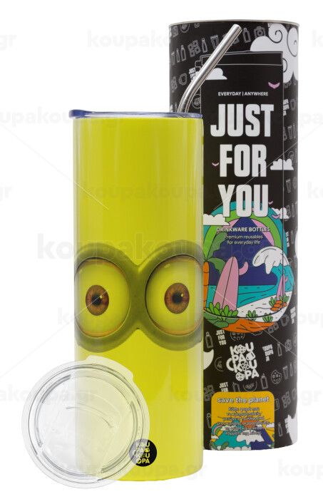 Minions, Neon Yellow Travel Tumbler, with metal straw (Stainless steel 304 Food grade, BPA free, 600ml)
