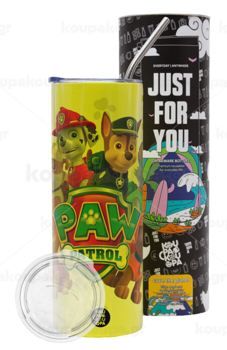 PAW patrol, Neon Yellow Travel Tumbler, with metal straw (Stainless steel 304 Food grade, BPA free, 600ml)