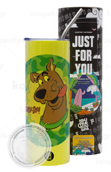 Scooby Doo, Neon Yellow Travel Tumbler, with metal straw (Stainless steel 304 Food grade, BPA free, 600ml)