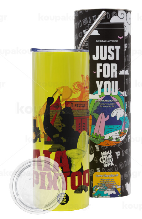Ηλία ρίχτοοο!!!, Neon Yellow Travel Tumbler, with metal straw (Stainless steel 304 Food grade, BPA free, 600ml)