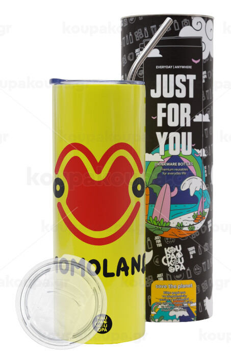 Momoland, Neon Yellow Travel Tumbler, with metal straw (Stainless steel 304 Food grade, BPA free, 600ml)