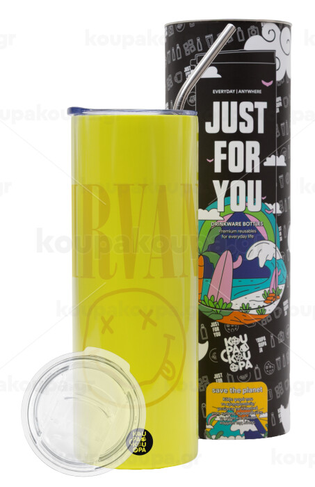 Nirvana, Neon Yellow Travel Tumbler, with metal straw (Stainless steel 304 Food grade, BPA free, 600ml)