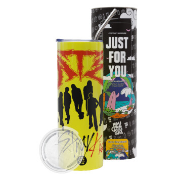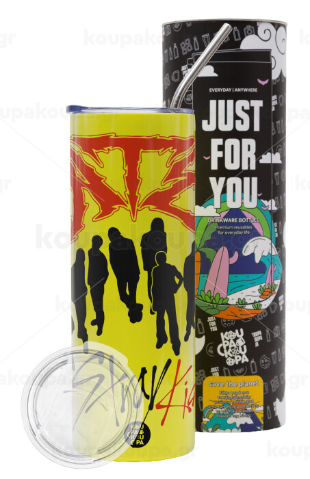 Stray Kids Boy band, Neon Yellow Travel Tumbler, with metal straw (Stainless steel 304 Food grade, BPA free, 600ml)