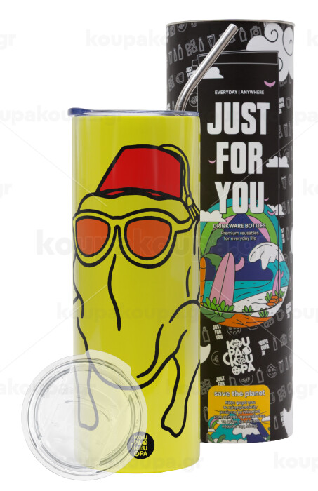 Friends turkey, Neon Yellow Travel Tumbler, with metal straw (Stainless steel 304 Food grade, BPA free, 600ml)
