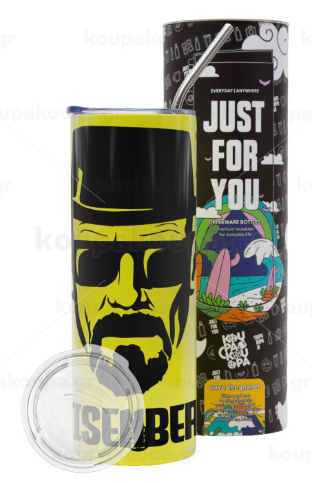 Heisenberg breaking bad, Neon Yellow Travel Tumbler, with metal straw (Stainless steel 304 Food grade, BPA free, 600ml)